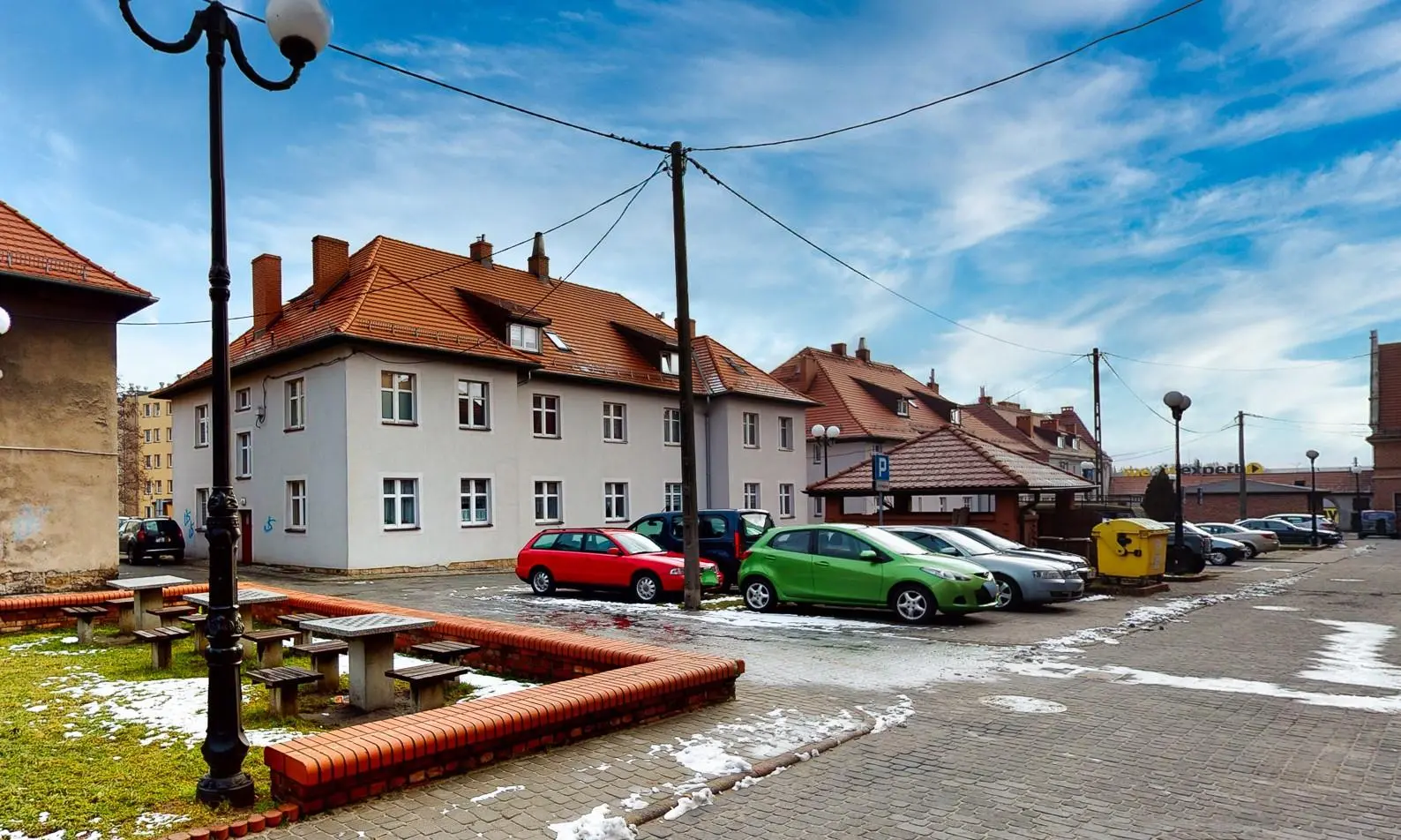 - pod blokiem parkingi oferujące wygodę w parkowaniu samochodu,